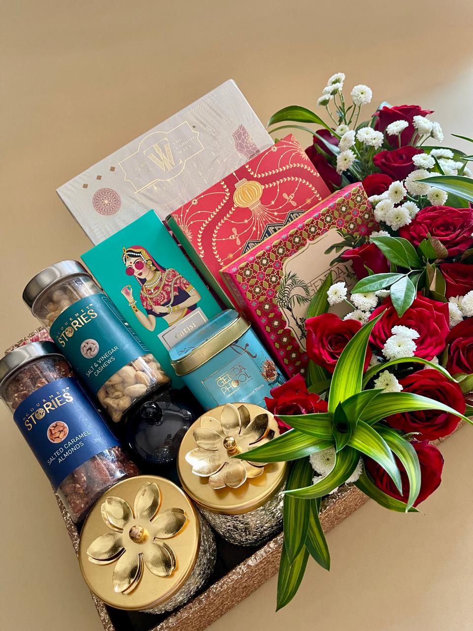 • Fresh Floral Dry Fruit & Mithai Gift Hamper